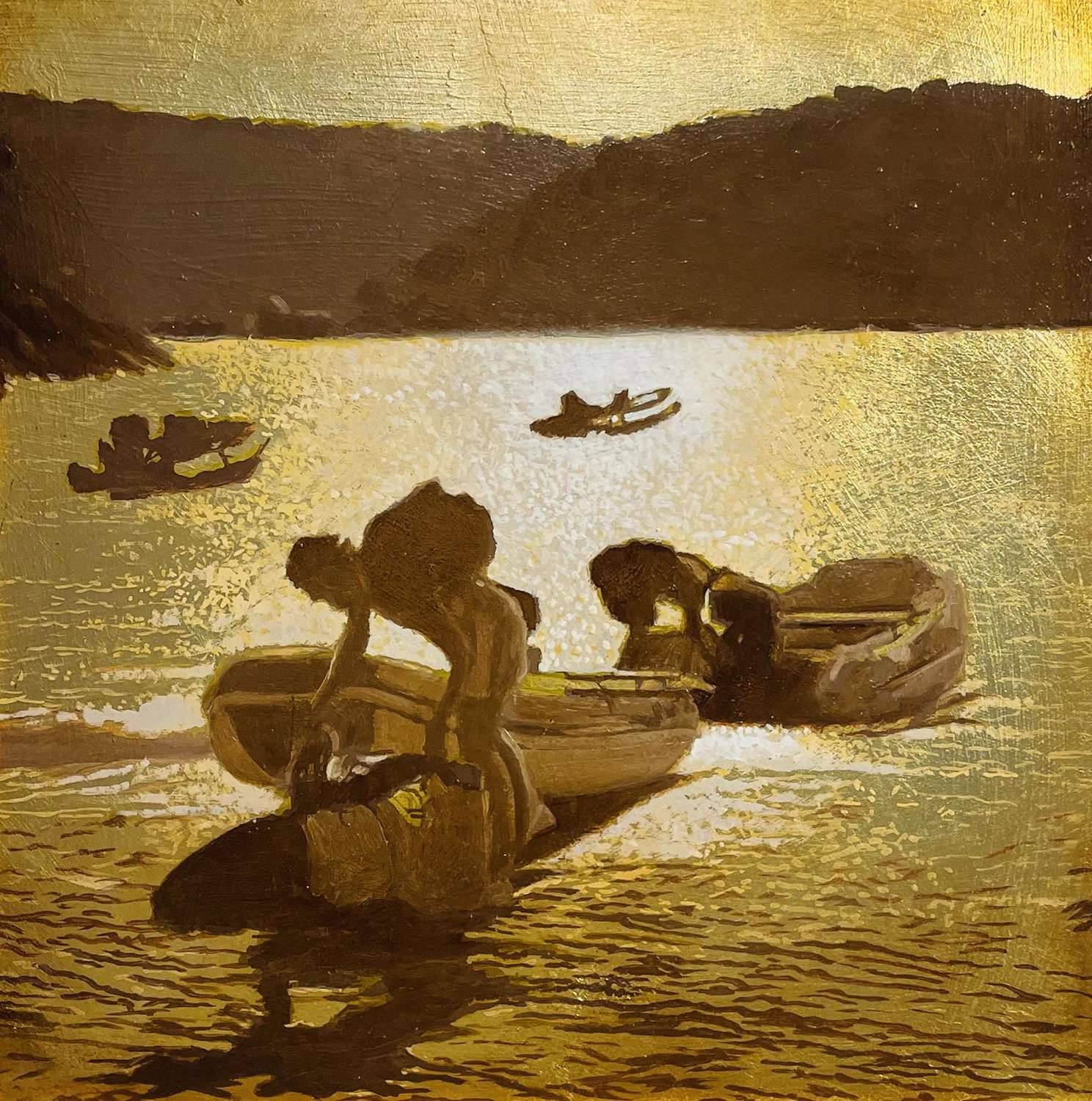 Gallery Artists Greg Ramsden RSMA Previous Next Greg Ramsden RSMAGold Reflections of Mill Bay Painting Oil on Gold Leaf 28 x 28 cms (11.02 x 11.02 ins) Ref: 723911 SOLD Enquire about this item Framed size 50 x 50 cm Share:
